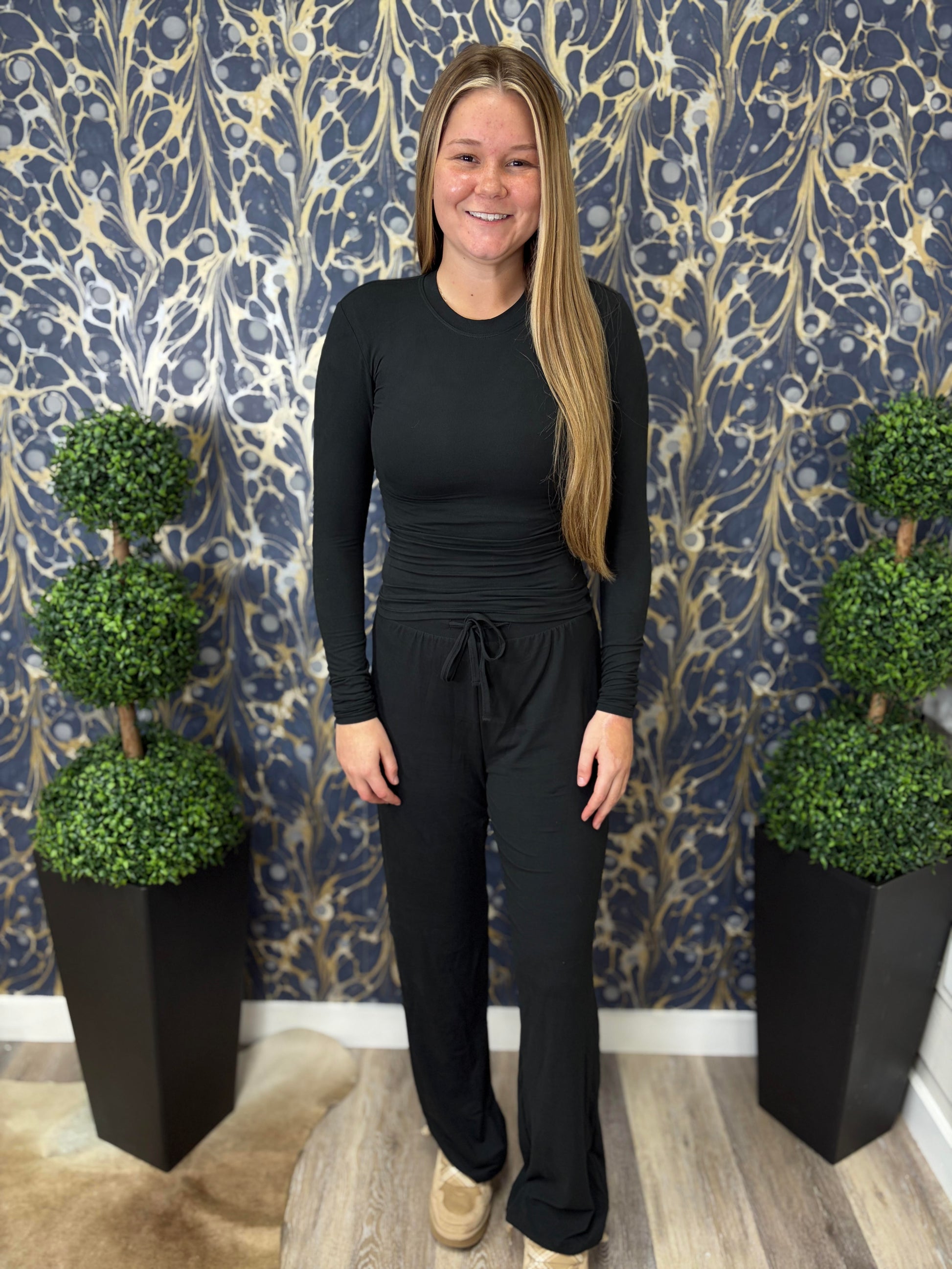 Black Soft Knit Jersey Wide Leg Pants