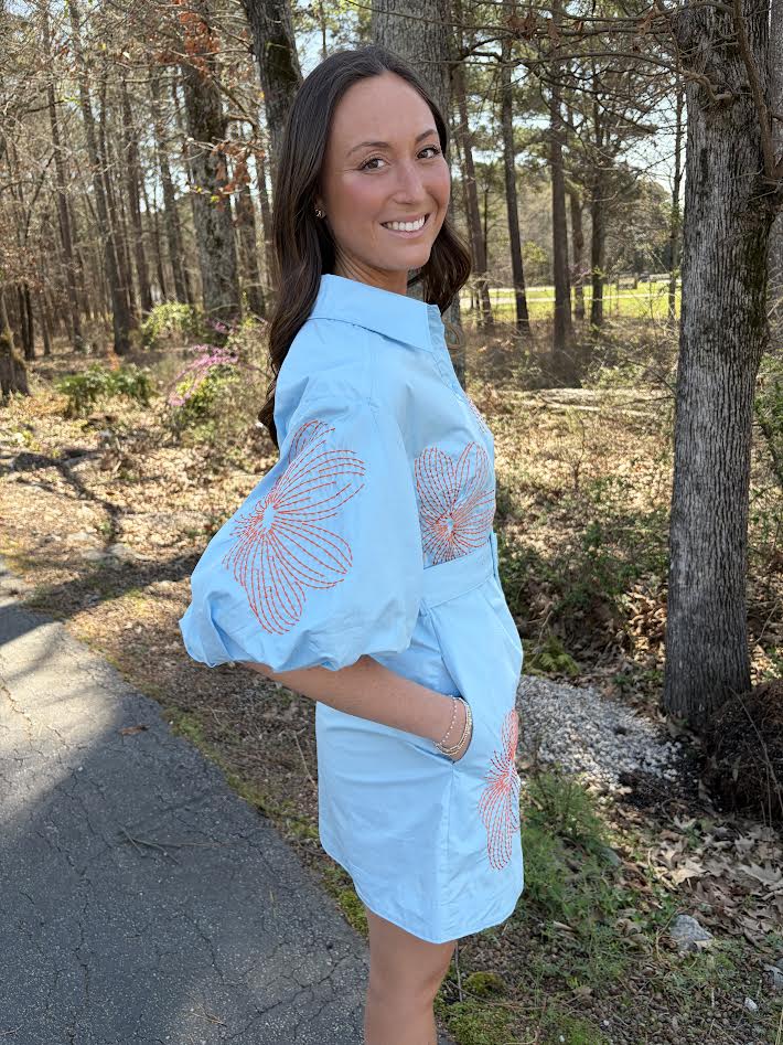 Floral embroidered detail with side pockets